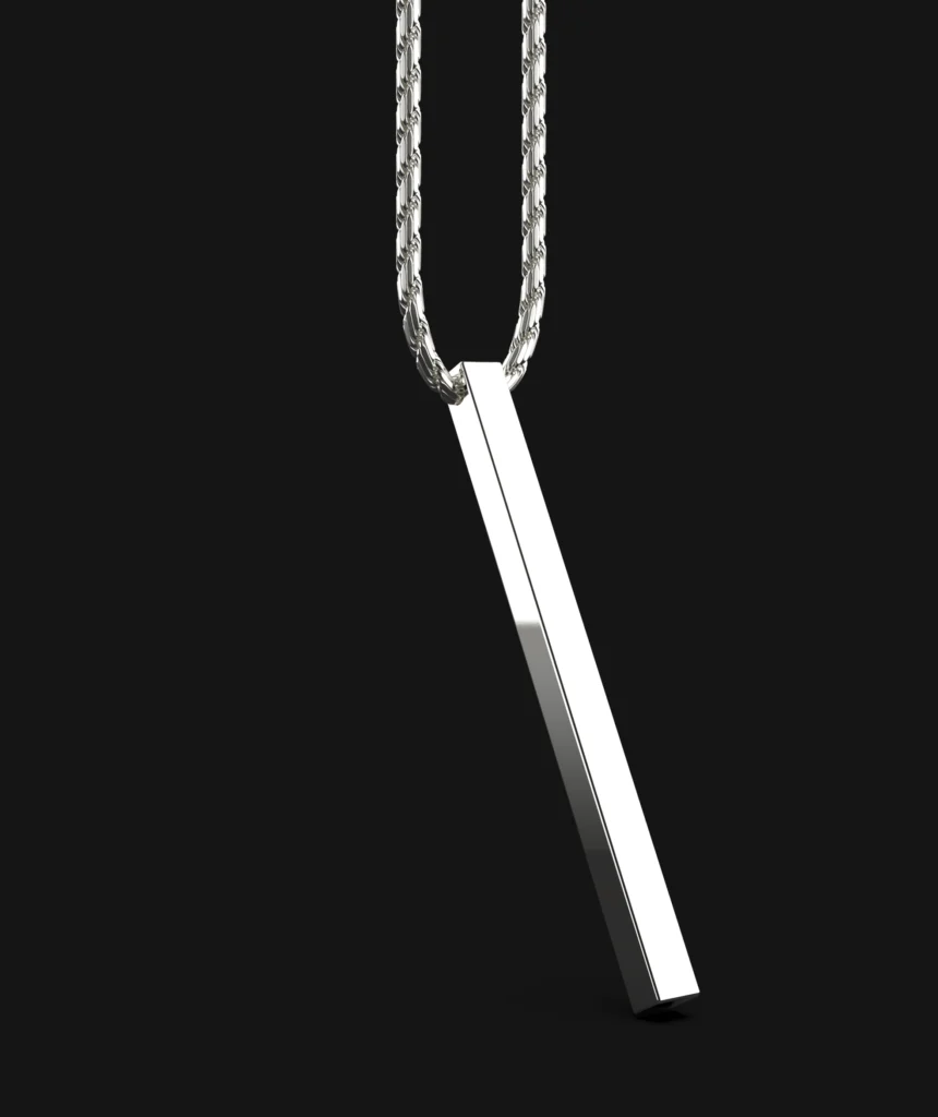 Este dije barra representa el minimalismo en su forma más pura. Su diseño estilizado, con una silueta vertical y perfectamente simétrica, proyecta una estética sobria y refinada que resalta por su simplicidad.